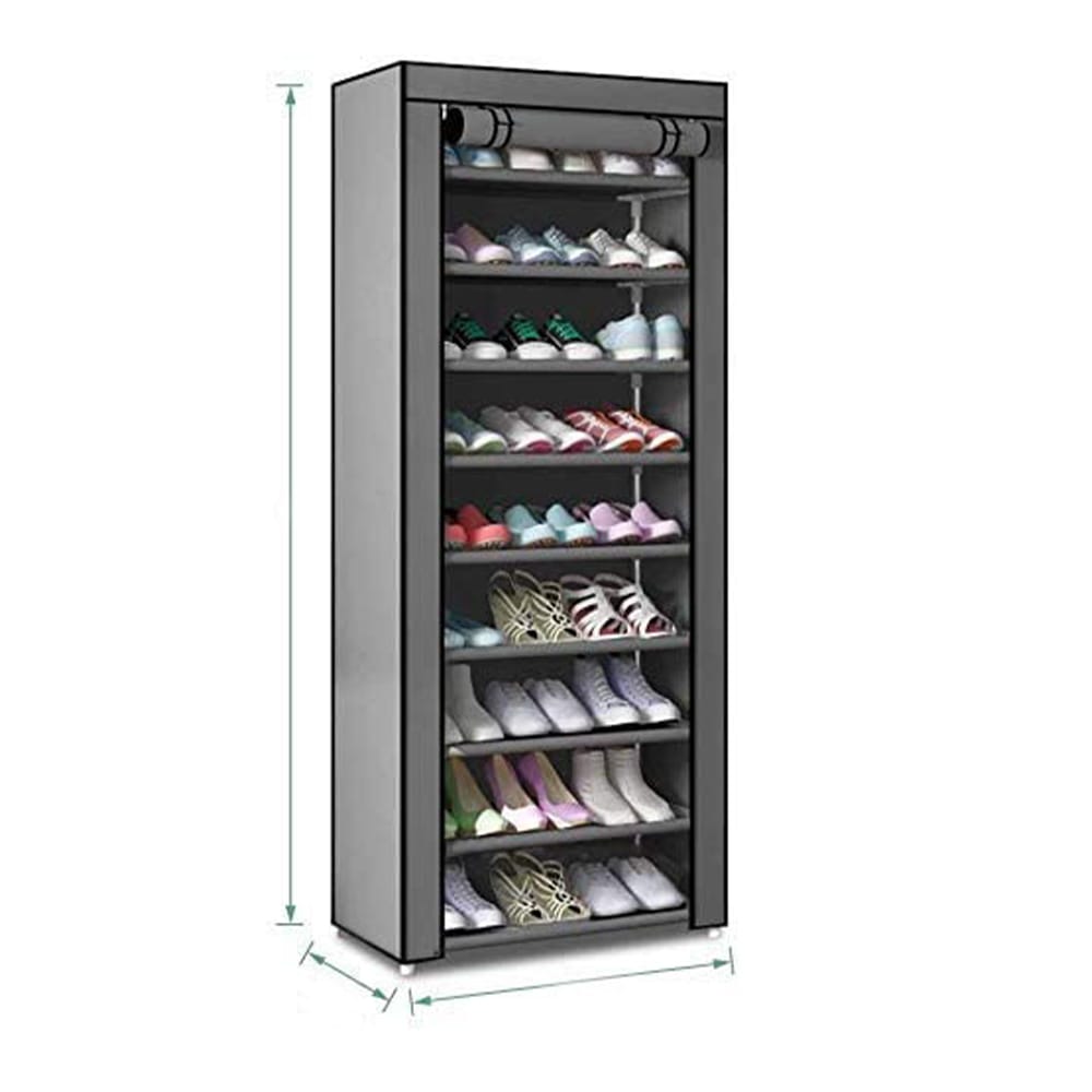 خزانة تنظيم الأحذية بـ 9 أرفف تعطيك سعة تخزين هائلة، تحمي أحذيتك من الغبار وتخليها منظمة في مكان واحد، مع تصميم متين وشكل أنيق يناسب أي زاوية في بيتك.