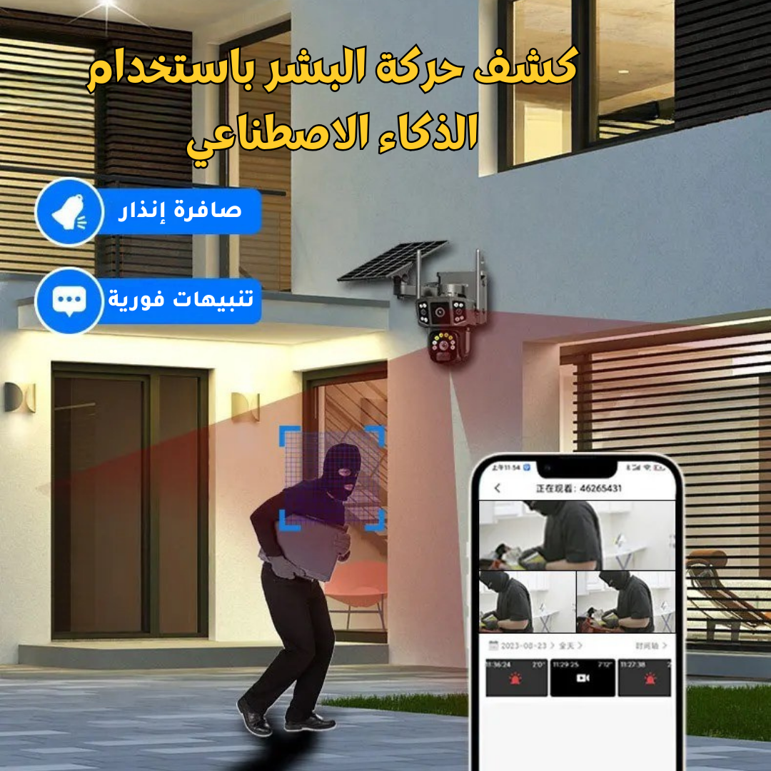 الذكاء الاصطناعي وعدسات فائقة الدقة لتمنحك راحة البال في كل لحظة. تعمل بالطاقة الشمسية، وتأتيك بضمان لمدة سنتين كاملتين، لتكون خيارًا ذكيًا يدوم طويلًا في البيوت، المخازن، المزارع، المشاريع التجارية، أو أي مساحة تحتاج إلى أمان ذكي ومستدام.