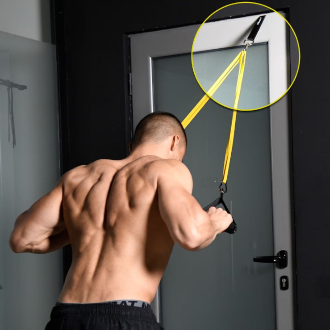 هذا الجهاز هو الحل العبقري اللي يحول أي زاوية في بيتك أو مكتبك لنادي رياضي احترافي. باستخدام وزن جسمك والمقاومة الديناميكية، تقدر تسوي أكثر من ٣٠ تمرين مختلف وتستهدف كل عضلة في جسمك بفعالية وأمان.